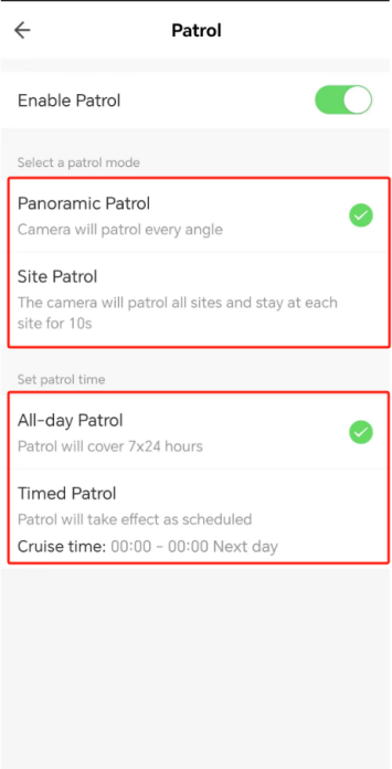 Step 4: Select a patrol mode and set patrol time.