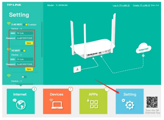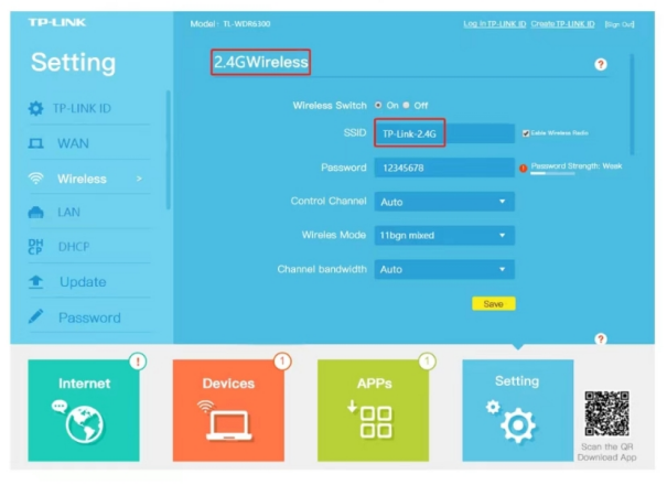 3. In the 2.4G Wireless area, set SSID to (XXX)-2.4G, where xxx indicates the Wi-Fi name. Saving setting.