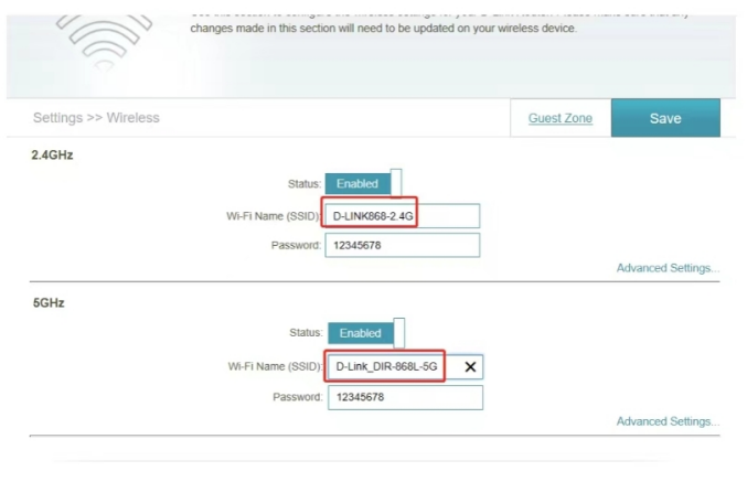After the Wi-Fi names are changed, you need to reconnect the devices that use this wireless router. The password remains the same if it has not been changed.