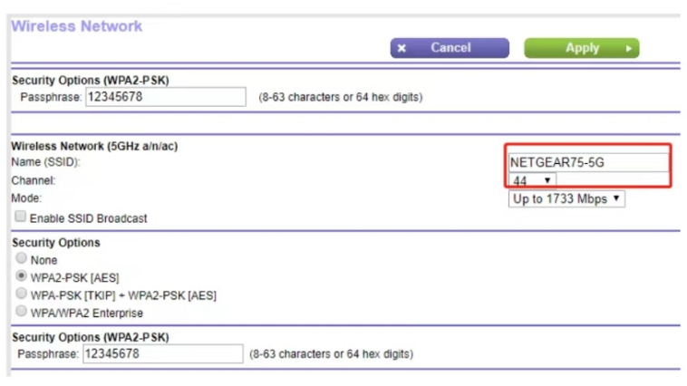 3. In the Wireless Network(5GHz a/n/ac) area, set Name(SSlD) to <xxx&rt;-5G, where xxx indicates the Wi-Fi name. Saving setting.